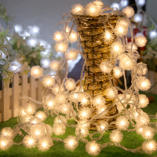 Dreamy Dandelions Fur Balls String Lights With Battery Box