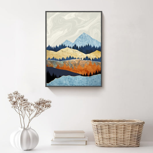 Framed Rolling Mountain Landscape Wall Canvas Decor